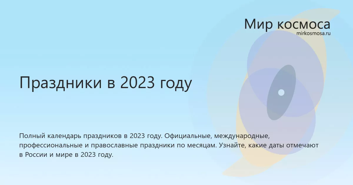 На этой странице собран календарь праздников на 2023 год с разбивкой по месяцам, типам и ключевым датам. В 2023 году в календаре представлено 487 праздников, включая 16 официальных праздничных дней.
