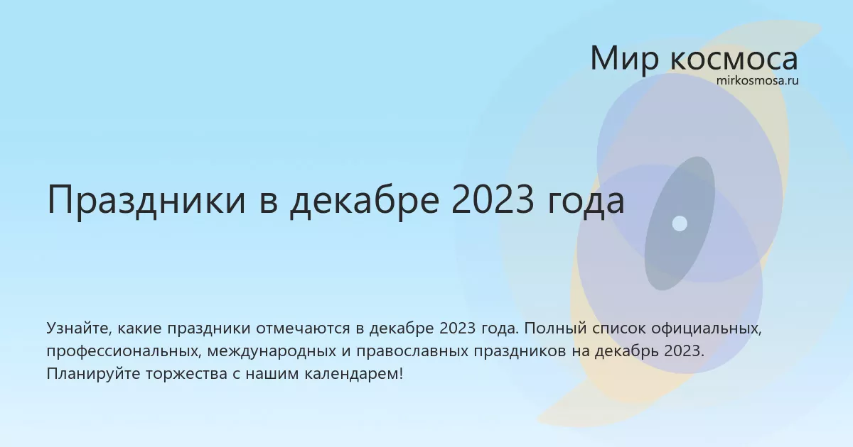 Краткая сводка по праздникам в декабре 2023 года