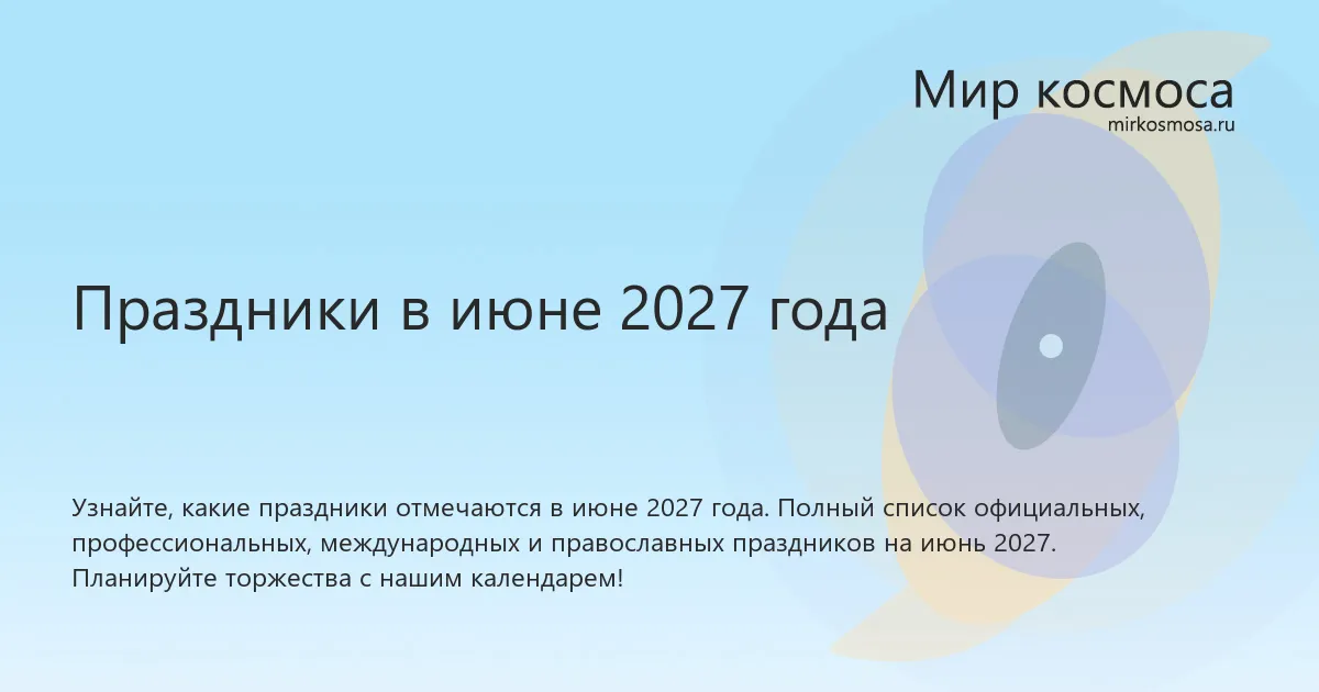 Какие праздники отмечаются в июне 2027 года?