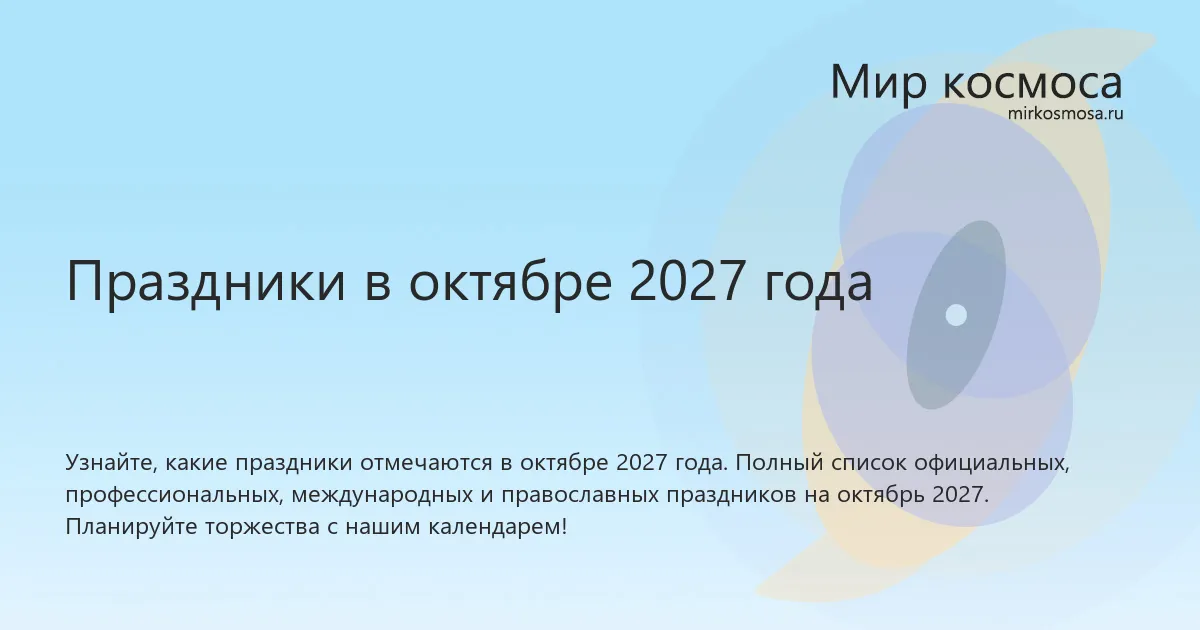В октябре 2027 года отмечается множество важных дат, среди которых: