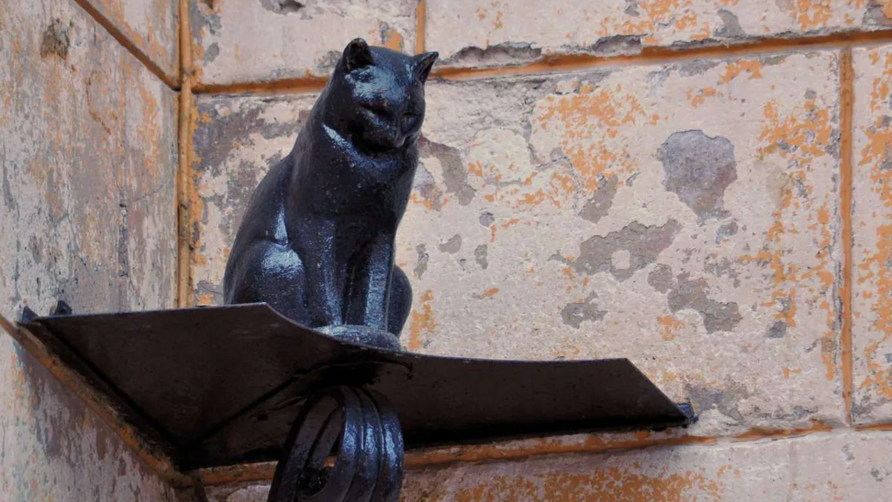 - 2. В 1999 году фонду Северной столицы были подарены 2 скульптуры. Это был кот Елисей и кошка Василиса, которых поселили на улице Малая Садовая. Инициатором такого действа стал предприниматель Илья Ботка.