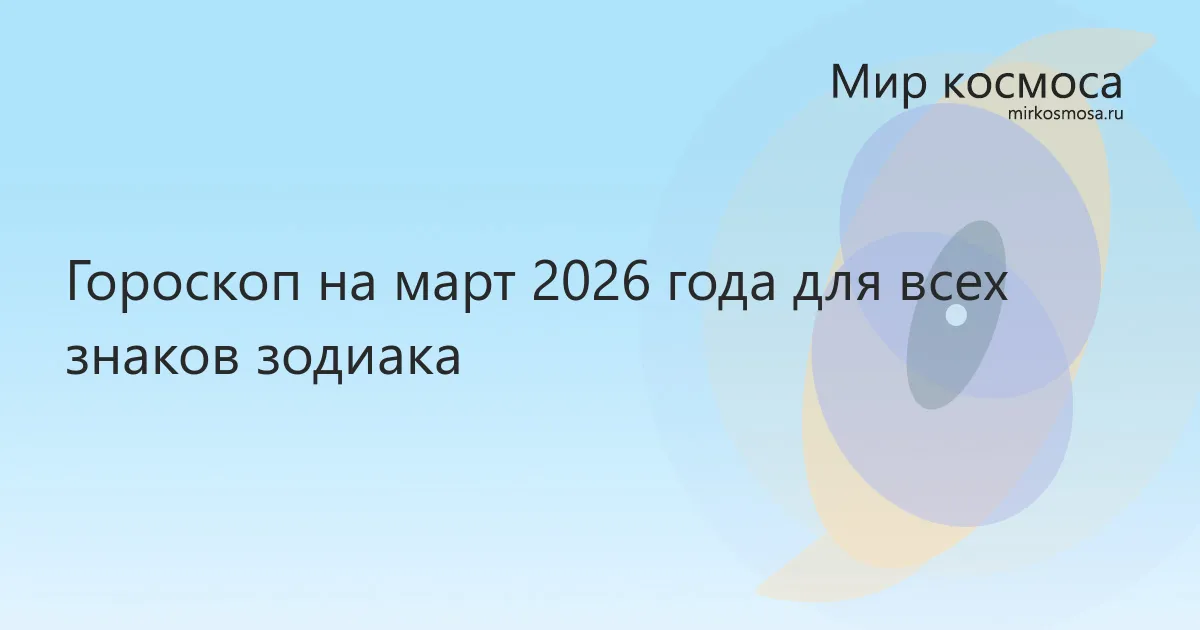 Гороскоп на март 2026 года для всех знаков зодиака, гороскоп поможет быть в курсе того, что вас ждет и к чему надо готовиться. В марте 2026 года различные события оказывают определенное действие на жизнь и судьбу человека. Выбрав самый благоприятный период, вы сможете избежать некоторых неприятных моментов в жизни, отношениях, семье, карьере и работе, а также обрести гармонию с собой и своим партнером.