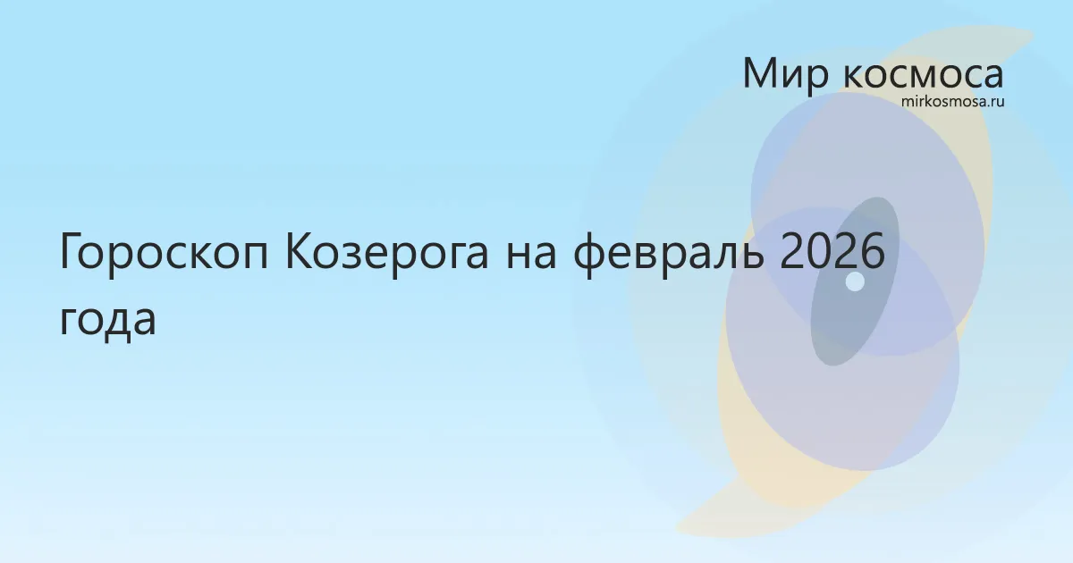 Гороскоп для Козерога на февраль 2026 года расскажет, что ждет Козерогов в отношениях, семье, карьере и работе, что будет со здоровьем. На данной странице представлен общий гороскоп для Козерогов, который даст вам несколько подсказок, чтобы вы смогли повлиять на свою жизнь.