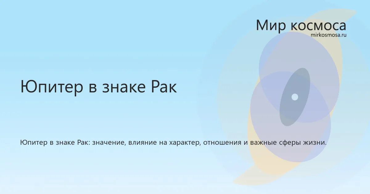 Юпитер в знаке Рак в астрологии показывает, как темы, связанные с рост, возможности, мировоззрение, обучение и расширение горизонтов, проявляются эмоционально, бережно и через темы безопасности. Такое положение помогает понять стиль проявления планеты, сильные стороны этой энергии и особенности ее влияния на характер и повседневные решения.