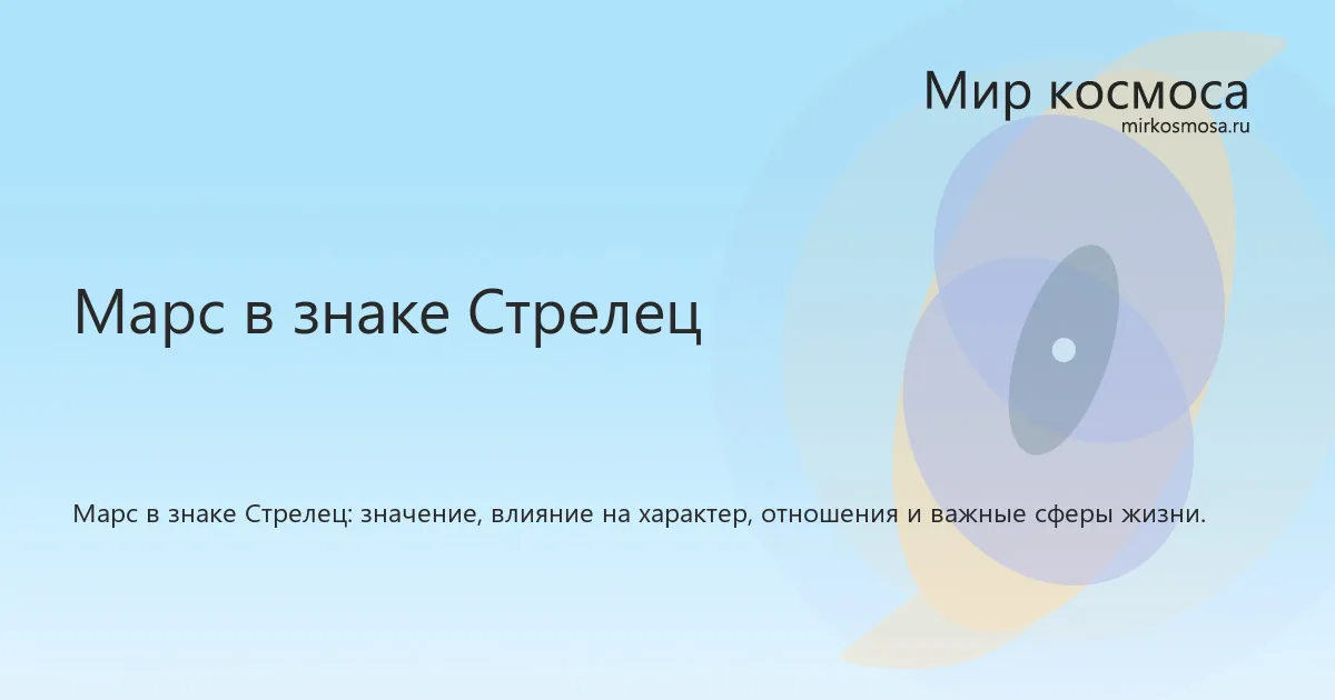 Марс в знаке Стрелец показывает, как качества планеты раскрываются в энергии этого знака зодиака и на какие сферы жизни влияние ощущается сильнее всего. На странице собраны описание значения, возможные проявления в характере, отношениях и делах, а также удобная навигация по другим знакам и планетам.