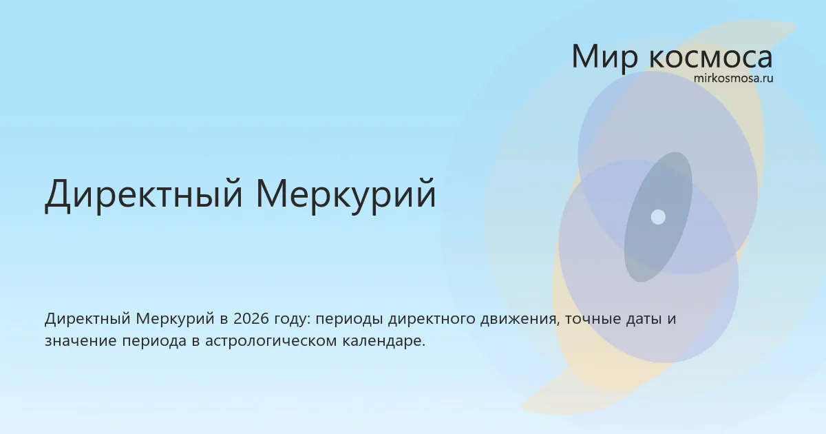 Директный Меркурий в 2026 году — это даты и периоды, когда меркурий меняет направление движения. Ниже собраны ключевые моменты начала и окончания периода, чтобы быстрее понять что означает директный меркурий в астрологии и как этот период влияет на основные сферы жизни и важные даты 2026 года.