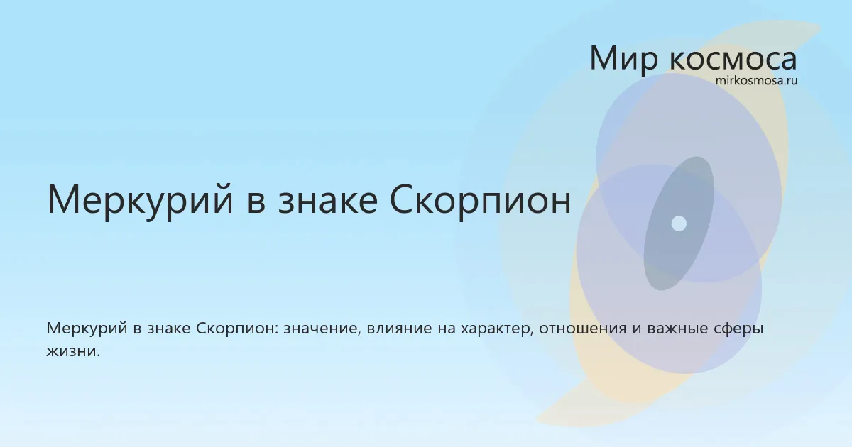 Меркурий в знаке Скорпион в астрологии показывает, как темы, связанные с мышление, общение, обучение, документы и поездки, проявляются глубоко, интенсивно и скрытно. Такое положение помогает понять стиль проявления планеты, сильные стороны этой энергии и особенности ее влияния на характер и повседневные решения.
