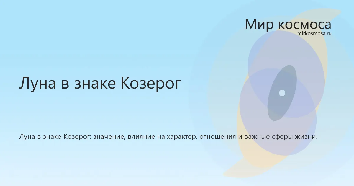 Влияние луна в знаке козерог обычно рассматривают через темы, которыми управляет луна: эмоции, привычки, чувство безопасности, настроение и реакции. Знак Козерог задает форму этого проявления, поэтому интерпретация касается и внутренних качеств, и отношений, и практических жизненных сценариев.