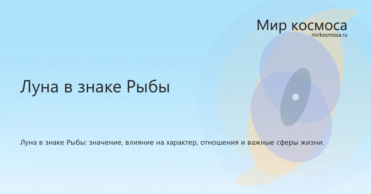 Луна в знаке Рыбы показывает, как качества планеты раскрываются в энергии этого знака зодиака и на какие сферы жизни влияние ощущается сильнее всего. На странице собраны описание значения, возможные проявления в характере, отношениях и делах, а также удобная навигация по другим знакам и планетам.