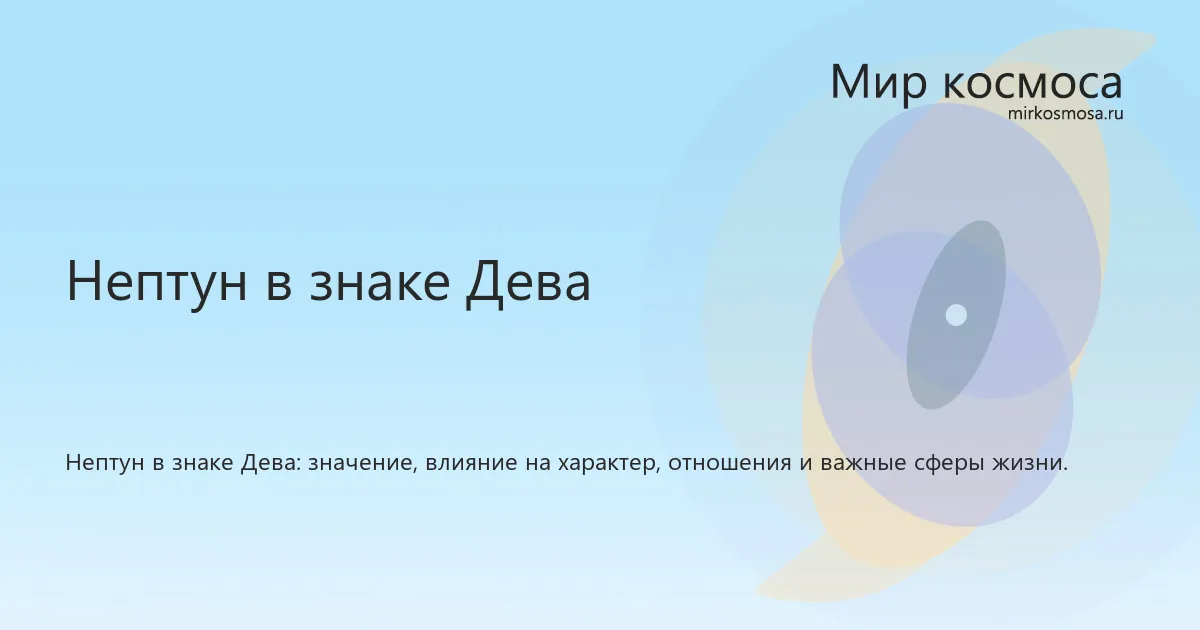 Нептун в знаке Дева показывает, как качества планеты раскрываются в энергии этого знака зодиака и на какие сферы жизни влияние ощущается сильнее всего. На странице собраны описание значения, возможные проявления в характере, отношениях и делах, а также удобная навигация по другим знакам и планетам.