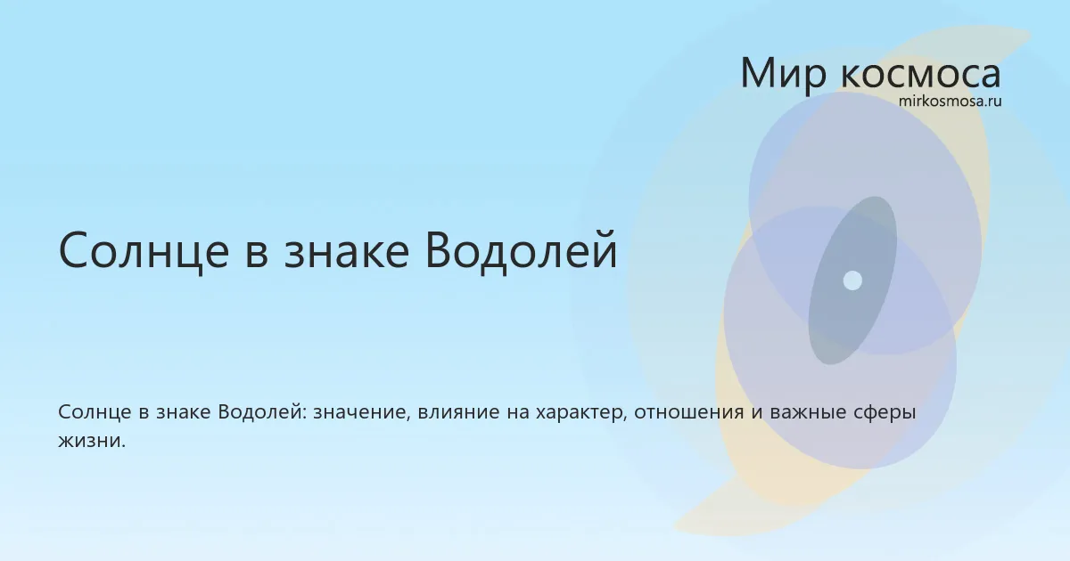 Солнце в знаке Водолей в астрологии показывает, как темы, связанные с самовыражение, жизненную силу, личную волю и ощущение себя, проявляются нестандартно, независимо и через новые идеи. Такое положение помогает понять стиль проявления планеты, сильные стороны этой энергии и особенности ее влияния на характер и повседневные решения.