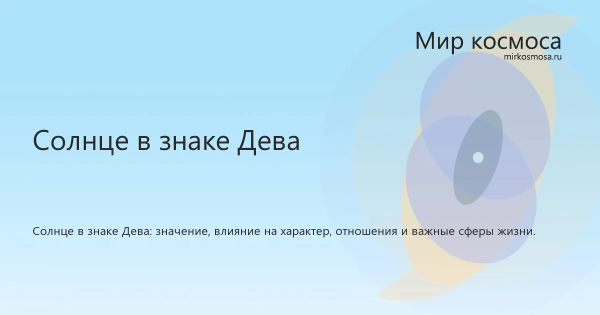Солнце в знаке Дева показывает, как качества планеты раскрываются в энергии этого знака зодиака и на какие сферы жизни влияние ощущается сильнее всего. На странице собраны описание значения, возможные проявления в характере, отношениях и делах, а также удобная навигация по другим знакам и планетам.