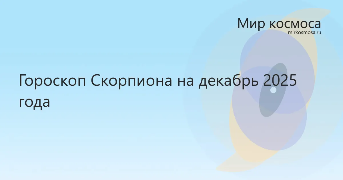 Гороскоп для Скорпиона на декабрь 2025 года расскажет, что ждет Скорпионов в отношениях, семье, карьере и работе, что будет со здоровьем. На данной странице представлен общий гороскоп для Скорпионов, который даст вам несколько подсказок, чтобы вы смогли повлиять на свою жизнь.
