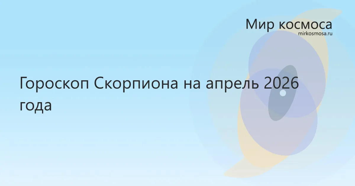 Гороскоп для Скорпиона на апрель 2026 года расскажет, что ждет Скорпионов в отношениях, семье, карьере и работе, что будет со здоровьем. На данной странице представлен общий гороскоп для Скорпионов, который даст вам несколько подсказок, чтобы вы смогли повлиять на свою жизнь.