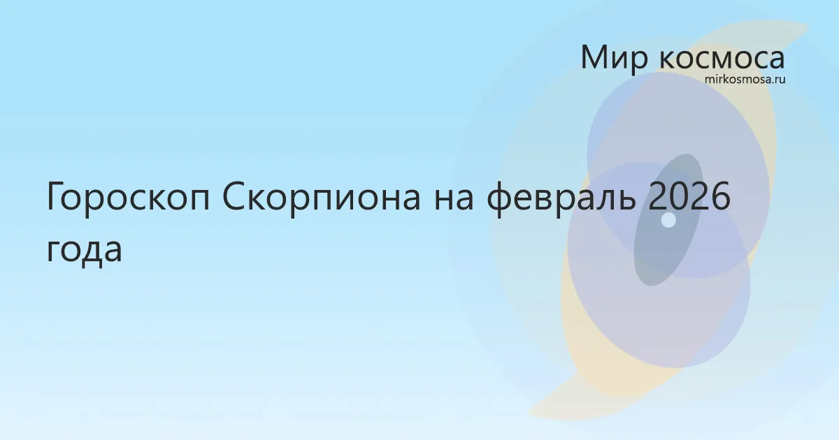Гороскоп для Скорпиона на февраль 2026 года расскажет, что ждет Скорпионов в отношениях, семье, карьере и работе, что будет со здоровьем. На данной странице представлен общий гороскоп для Скорпионов, который даст вам несколько подсказок, чтобы вы смогли повлиять на свою жизнь.