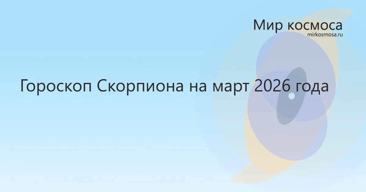 Гороскоп для Скорпиона на март 2026 года расскажет, что ждет Скорпионов в отношениях, семье, карьере и работе, что будет со здоровьем. На данной странице представлен общий гороскоп для Скорпионов, который даст вам несколько подсказок, чтобы вы смогли повлиять на свою жизнь.