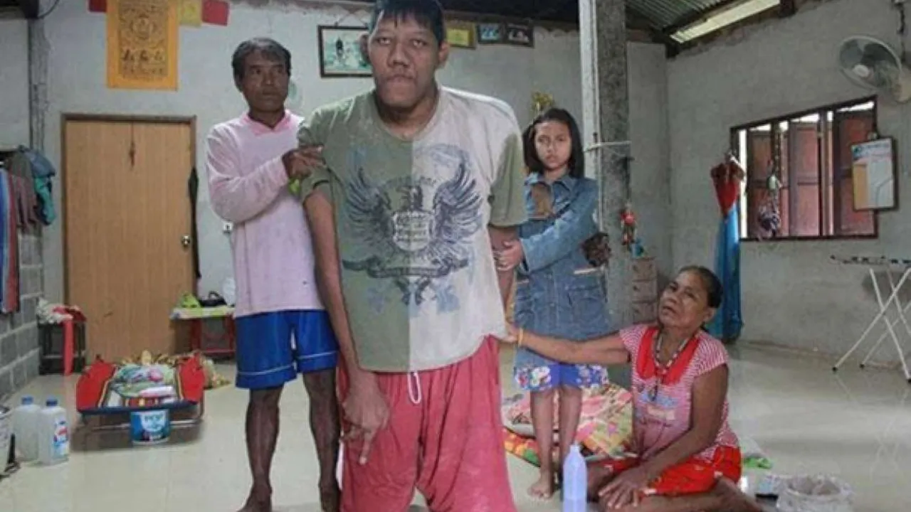 Мать Порнчая заявляет, что ее дитя начало невероятно интенсивно расти начиная с 6 класса. До этого мальчик абсолютно не отличался от остальных детей, ничем не болел и развивался нормально как физически, так и умственно.