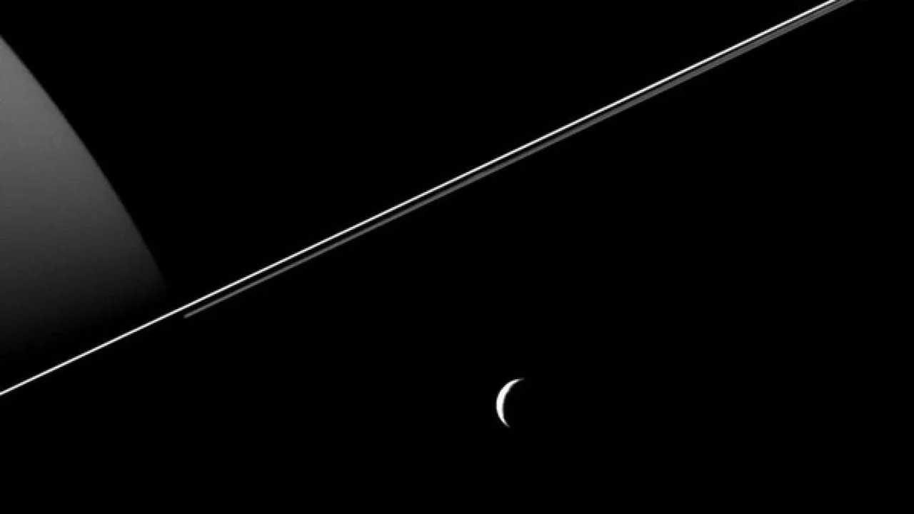 «Кассини» сфотографировал спутник Сатурна Тефию в виде полумесяца