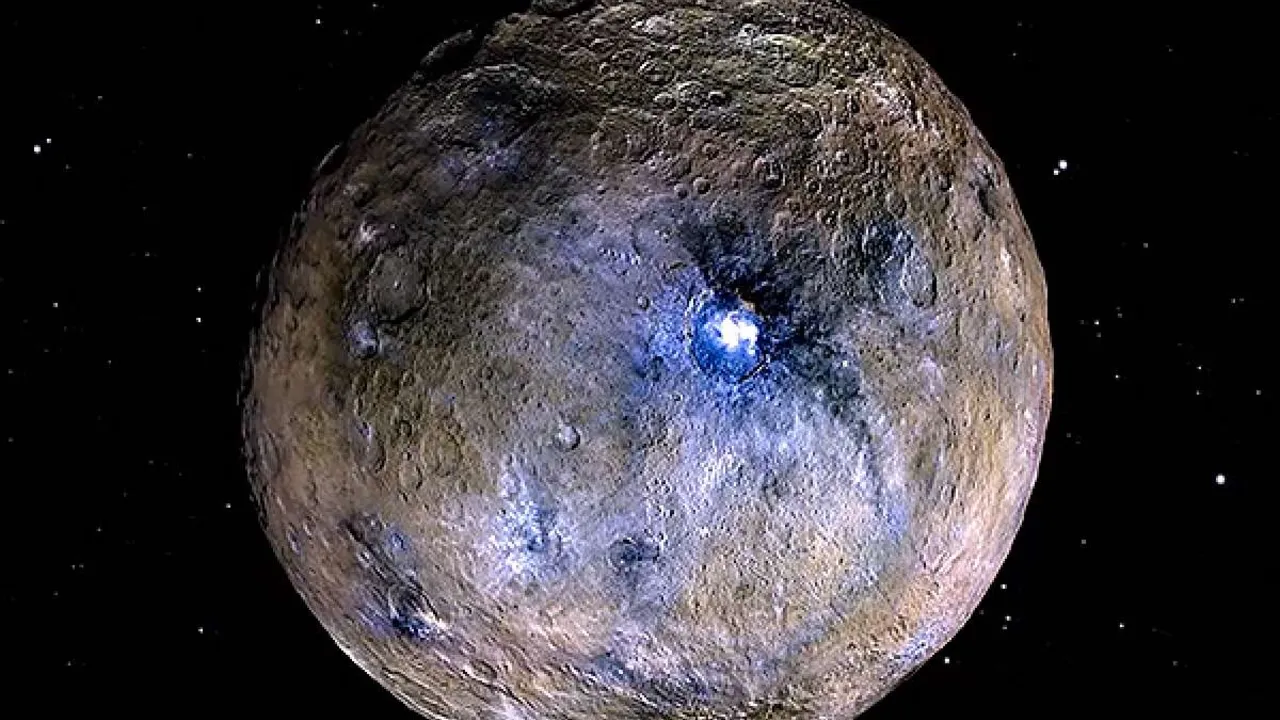 Церера — ближайшая к светилу «планета-карлик», расположенная в астероидном поясе между планетами Марс и Юпитер. Данный космический объект имеет на своей поверхности яркие необычные кратеры, природу которых на протяжении нескольких месяцев пытались определить планетологи NASA. Теперь им стало известно о данных соляных кратерах практически все. Разгадать тайны кратеров удалось благодаря серии фотоснимков, представленных аппаратом «Dawn».