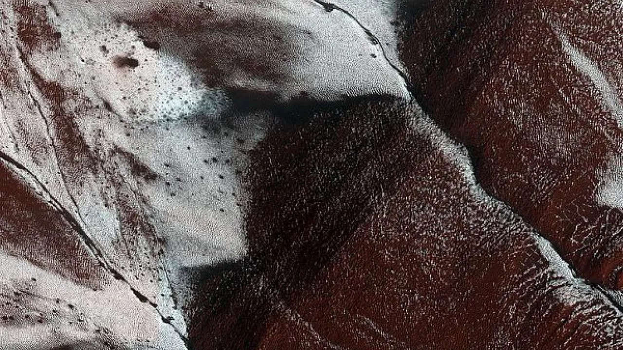 В канун Нового года в сети появились фотографии льда на Марсе. Снимки сделаны в конце ноября 2014 года подтверждают наличие льда на Марсе. Пока не ясен состав льда, но ученые склоняются к тому, что это обычный для Земли водяной лед. Снимки сделаны благодаря одному из 6 аппаратов НАСА- MRO (Mars Reconnaissance Orbiter) c помощью камеры HiRISE. Скалы, площадью почти пять квадратных километров, покрыты льдом с южной стороны, а северной лед уже растаял. Подобные образования льда уже замечали в этом районе, но они быстро исчезали.