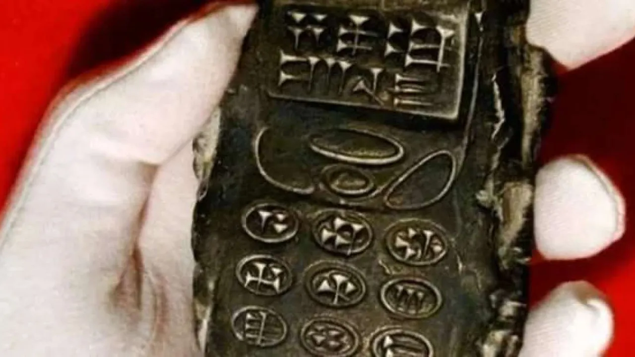 "Мобильный телефон", как полагают ученые, мог быть завезен из Месопотамии. Удивительно, что снаружи он представляет собой точную копию мобильников, которые выпускались в начале 2000-х годов. Длина предмета по размерам сравнима с ладонью, имеется "экран", а также стандартные кнопки, на которых нанесены Шумерские письмена.