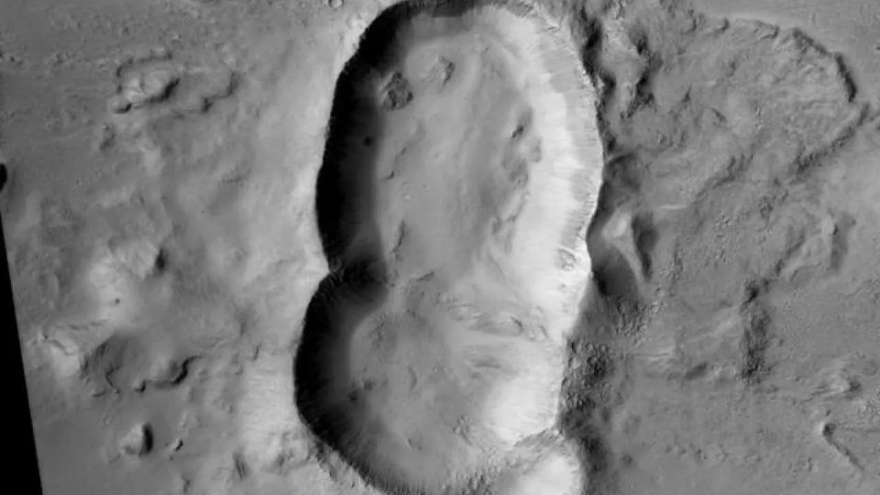 Кратер с необычной формой обнаружили на поверхности красной планеты