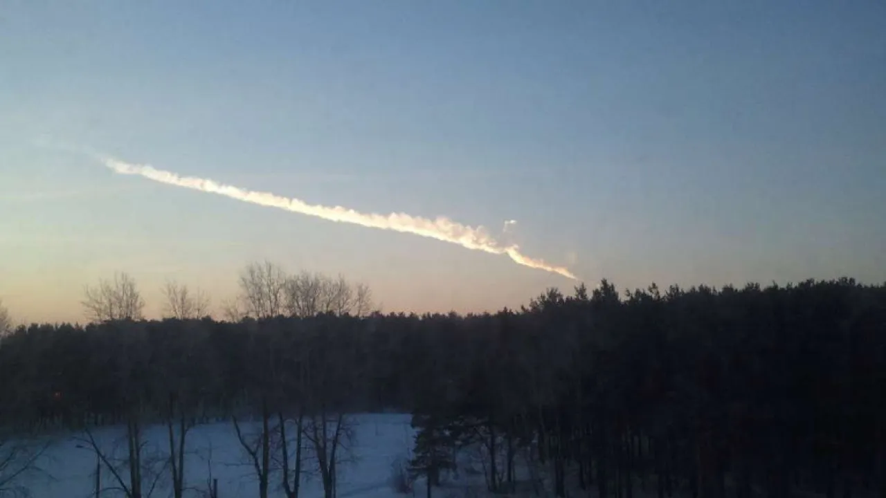 Рано утром 15 февраля в небе над Челябинской областью пронесся и взорвался крупный метеорит. Перед взрывом он раскололся на несколько фрагментов. Тысячи людей наблюдали яркую вспышку и огромный белый след в небе.