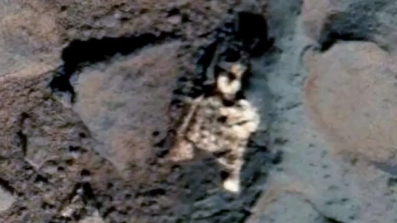 Любители загадочной Вселенной попросту перепутали изображенные на фотографии особенности рельефа Марса с останками некого человекоподобного существа.