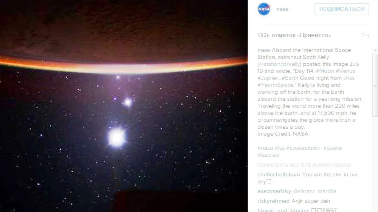 Зовут героя-астронавта, о котором говорилось ранее, Скоттом Келли. В определенный момент в иллюминаторе МСК данная персона увидела выстраивание планет, в перечень которых вошли Луна, Венера и Юпитер. Вышеперечисленные космические тела построились в шеренгу друг за другом, создав «звездную линию». Подобные редчайшие явления случаются с очень редкой периодичностью, поэтому пропустить его исследователи попросту не могли.