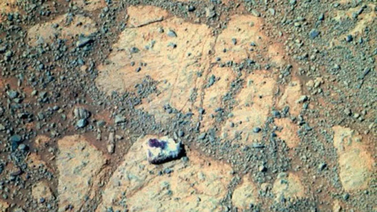 Предмет как будто появился из ниоткуда. Ученые ломали головы, что же в реальности сфотографировал марсоход. По одной из версий, Opportunity сковырнул манипулятором кусок породы. Другая версия предполагала, что это упавший метеорит. Интригу добавлял тот факт, что как показал анализ, камень имел для Красной планеты редкий состав. В нем обнаружили чрезвычайно много серы, магния и марганца.