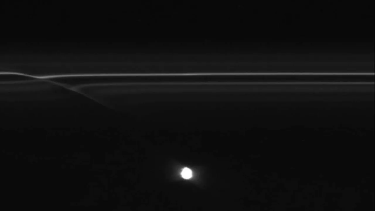 Агентство НАСА на своем официальном сайте представило публике новые фотоснимки сатурновских колец. Данные фотографии произвел зонд «Кассини», который ранее уже отличился своими интересными открытиями. На представленной фотографии можно видеть одно из колец вышесказанной планеты, которое напоминает продолговатую изогнутую нить. Астрономы называют данное кольцо «объектом F».