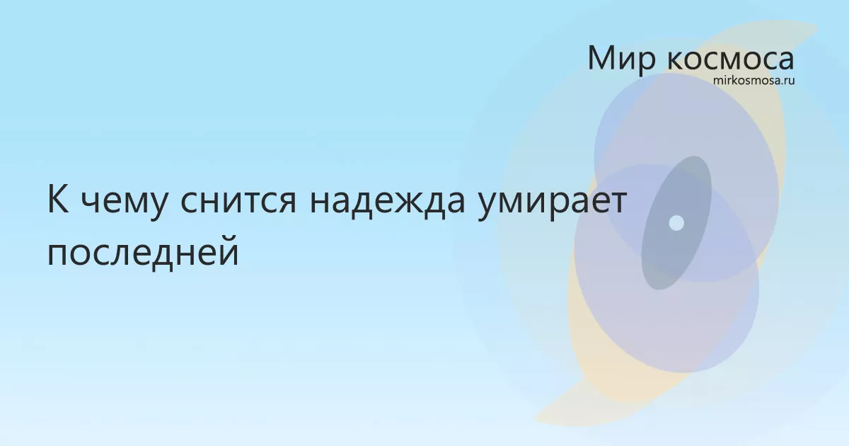 В снах, в которых снится "надежда умирает последней", толкование может быть неточным и иметь различное значение. Толкование снов является всего лишь одним из возможных способов изучения своего подсознания и подвержено субъективной интерпретации, как и любая другая психологическая форма. Поэтому важно не считать его единственным и полным источником информации о себе и своей жизни. Подробнее о толковании снов смотрите здесь.