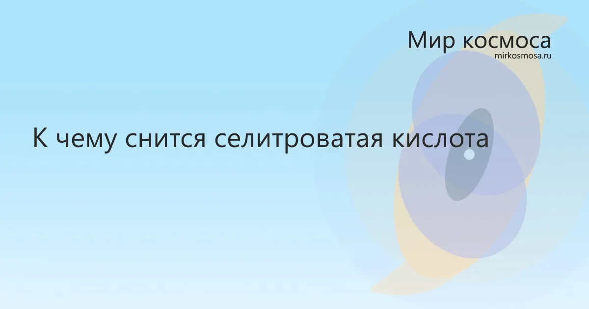 Значение сна селитроватая кислота зависит от деталей сюжета, роли образа во сне и ваших эмоций. Основное толкование ниже поможет быстро понять общий смысл, а дополнительные версии уточнят трактовку.